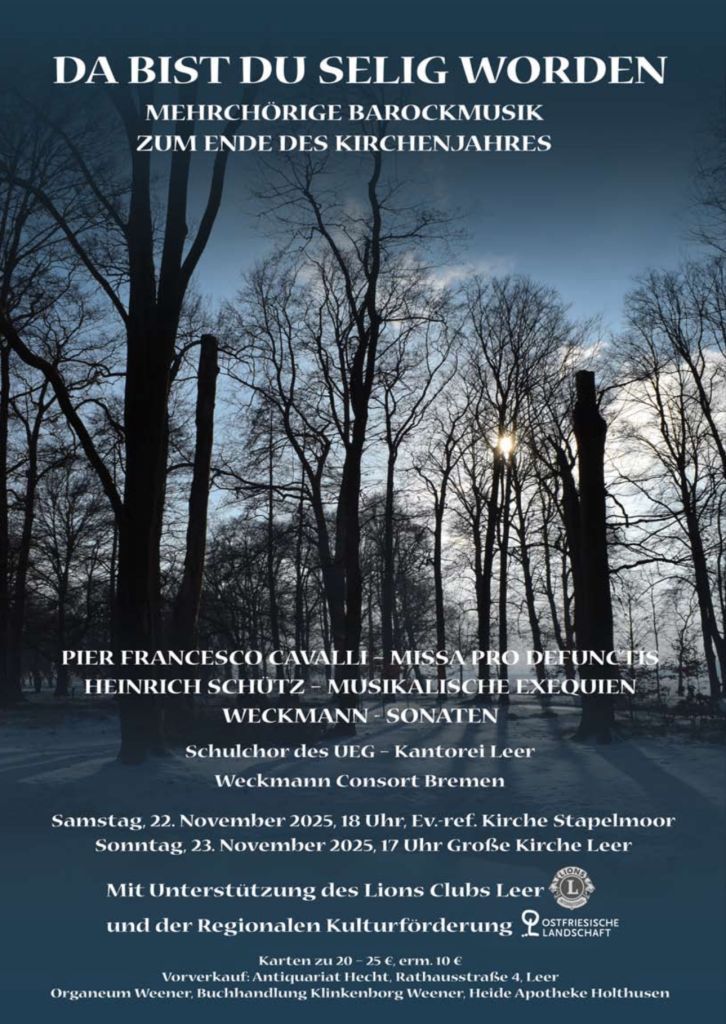 am Sonnabend, den 22.11.2025, um 18 Uhr in der ev.ref. Kirche in Stapelmoor und